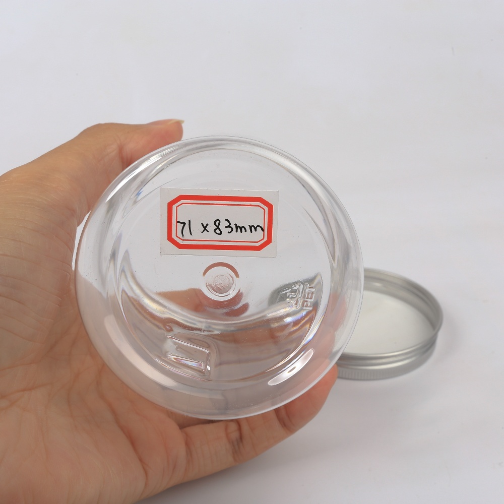 capacity:250ml. Diam 71mm*Height 85mm. net weight of plastic jar:25g.